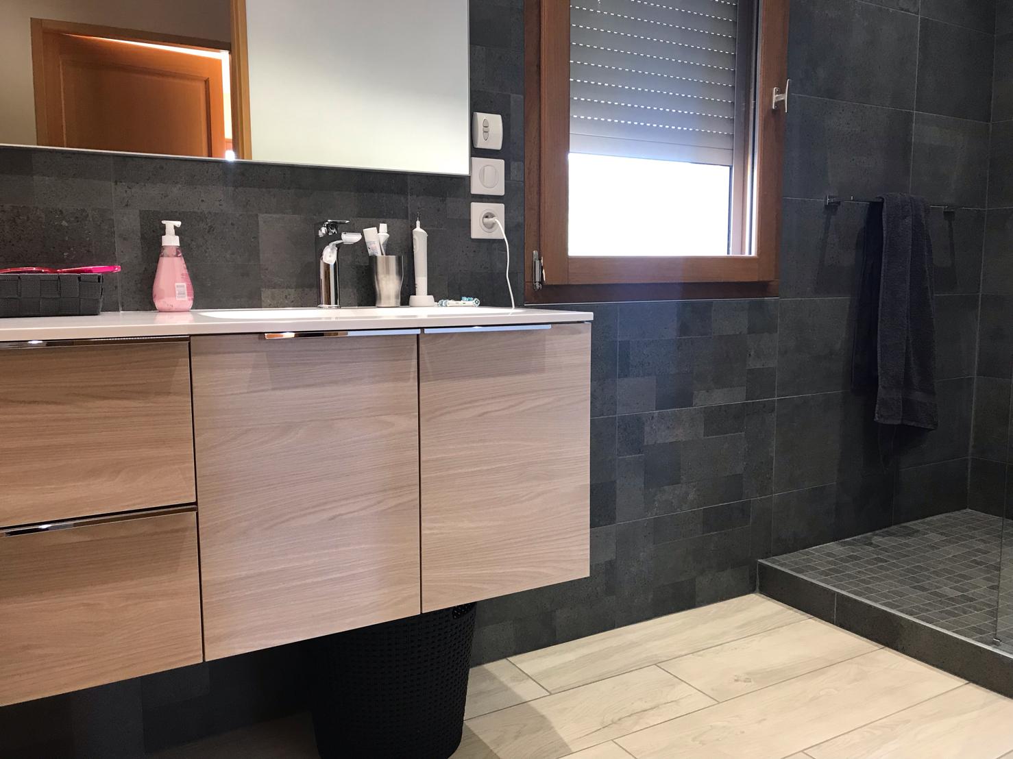 Salle bains clefs en main avec douche italienne sur mesures et bonde inox emboutie.