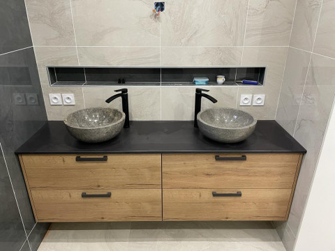 Nos clients ont choisi pour leurs mobiliers les tons bois et noir pour un rendu moderne et intemporel.